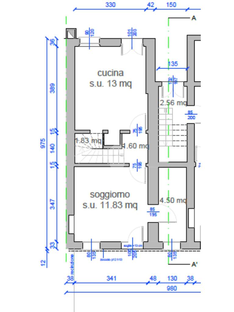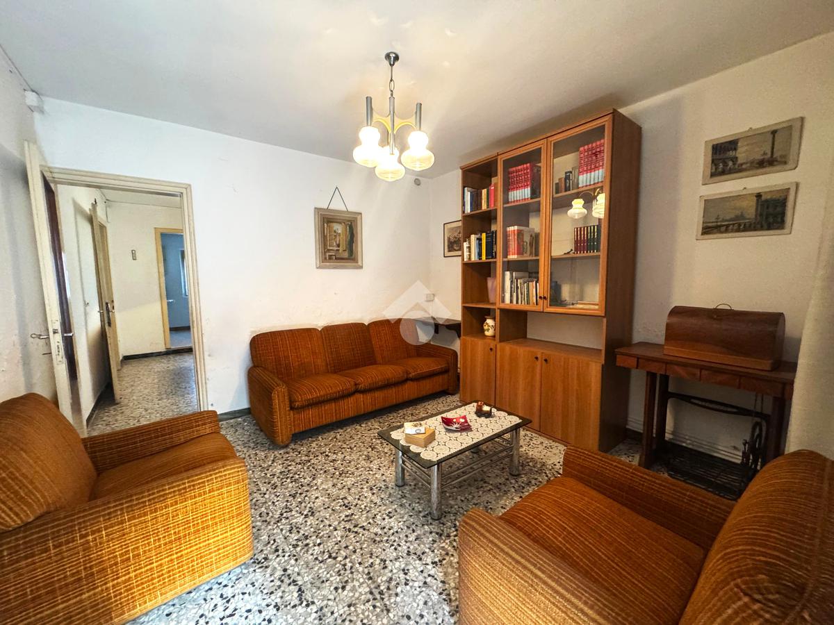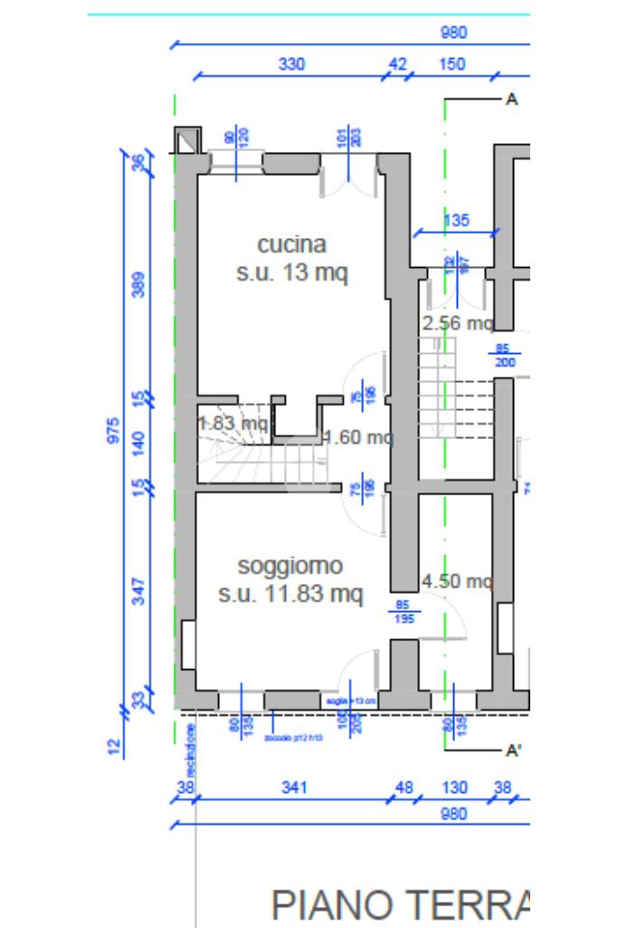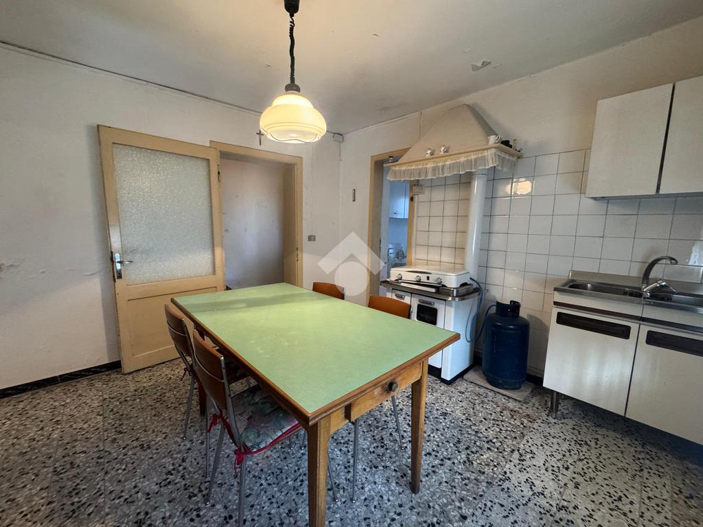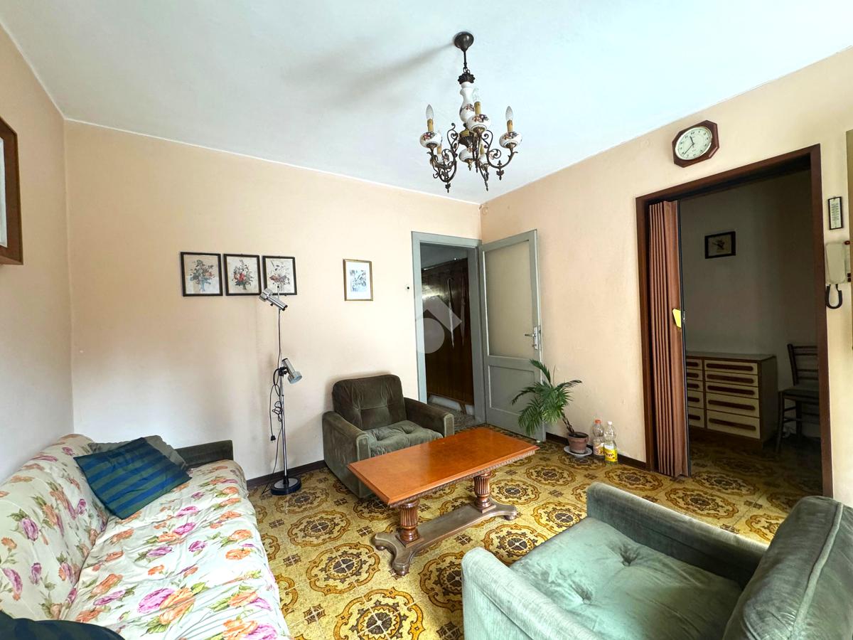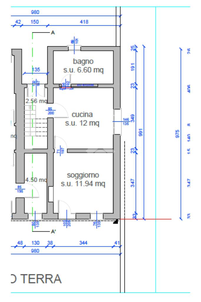 Piano terra: soggiorno, cucina separata e bagno finestrato.