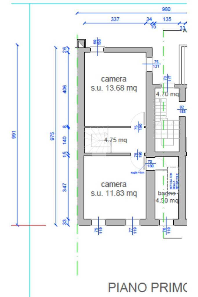 Piano primo: due camere matrimoniali e bagno finestrato.