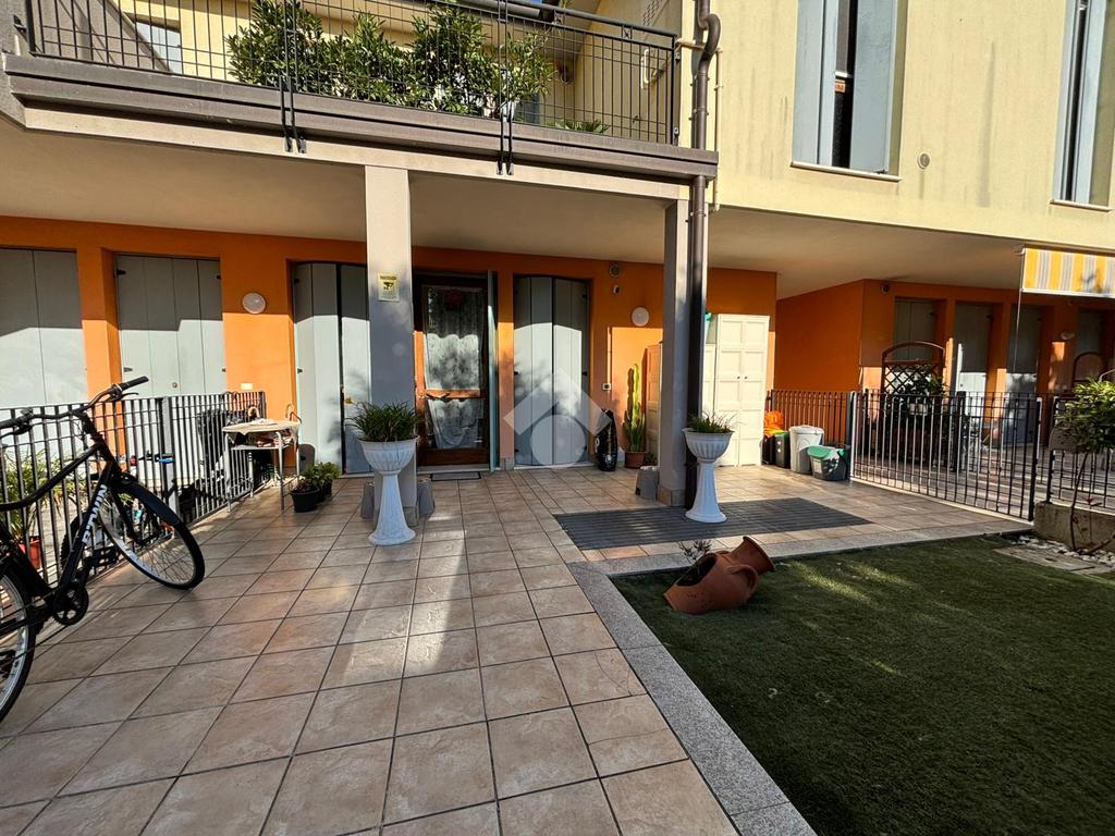In palazzina edificata nel 2006, proponiamo in esclusiva appartamento al piano terra con ingresso indipendente e giardino privato su due lati per un totale di 112 mq.