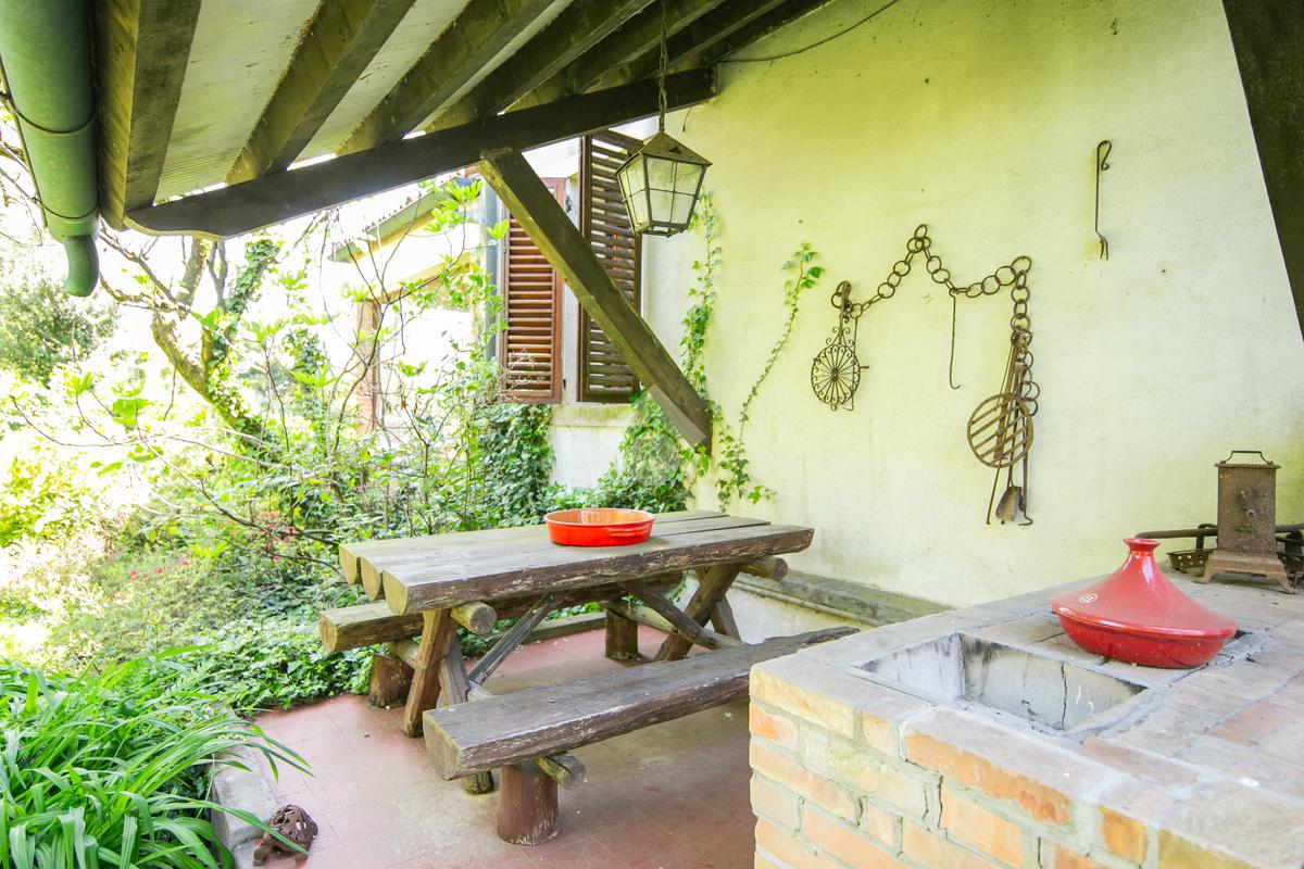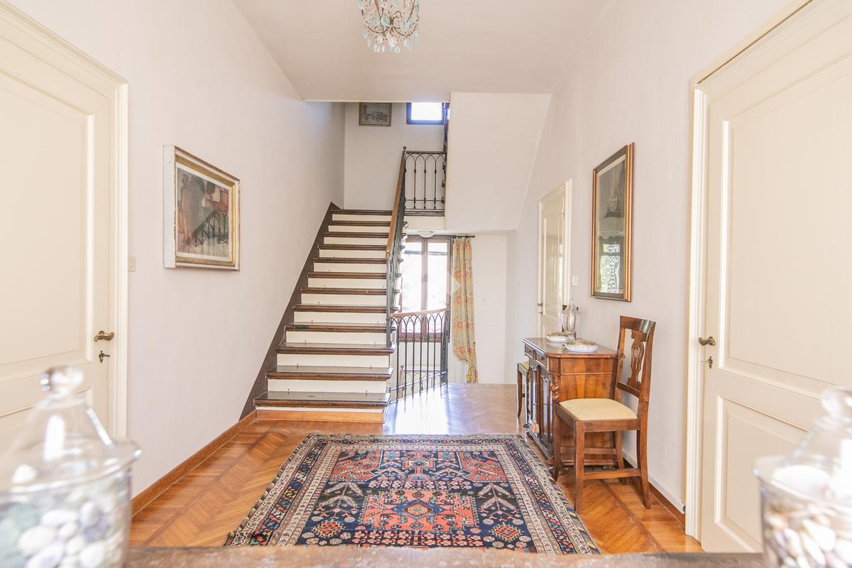 Disposta su tre livelli: al piano terra rialzato soggiorno con camino, zona pranzo, cucina con accesso al portico esterno con barbecue, studio e bagno. Al primo piano 3 camere matrimoniali (2 con bagno en suite) e ulteriore bagno. La mansarda, ristrutturata, ospita un alloggio indipendente con soggiorno, cucina a scomparsa, camera e bagno.