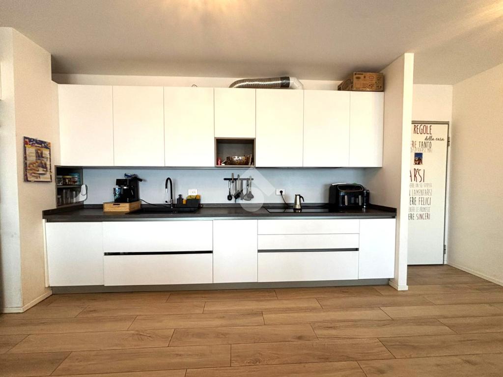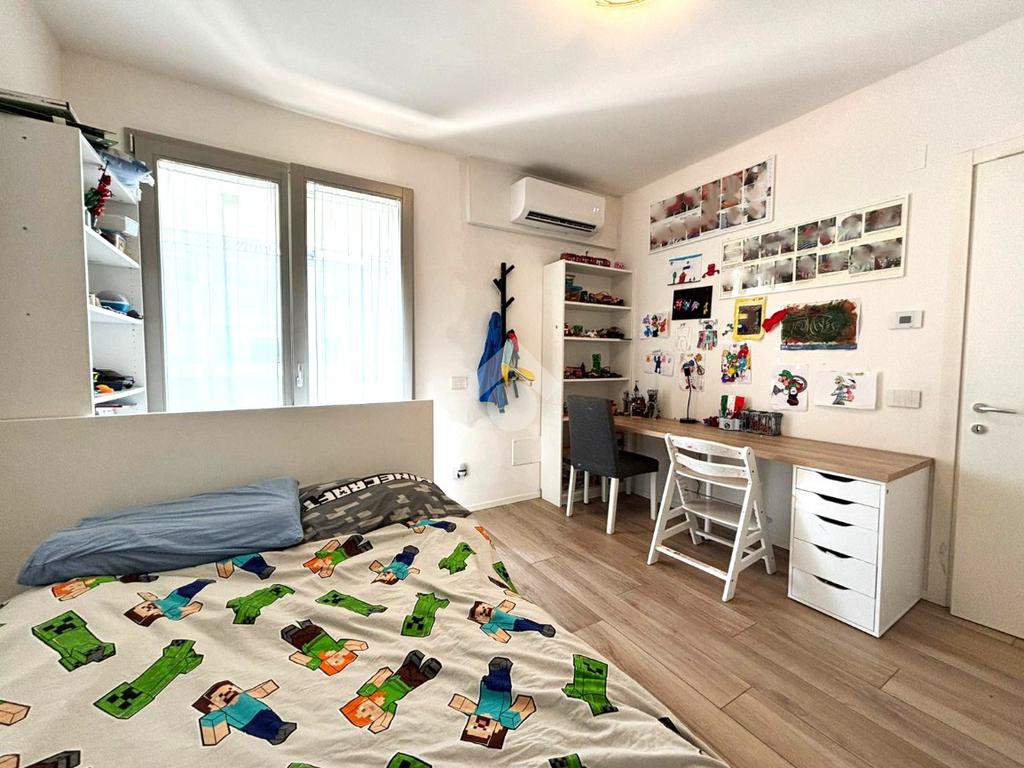 L’immobile è in classe energetica A4 e presenta finiture personalizzate. La pavimentazione è in gres effetto legno, fatta eccezione dei bagni dov’è piastrellata, mentre i serramenti sono in PVC con scuri esterni in legno e zanzariere. Il riscaldamento è centralizzato a pavimento e l’appartamento è inoltre dotato di impianto di climatizzazione.